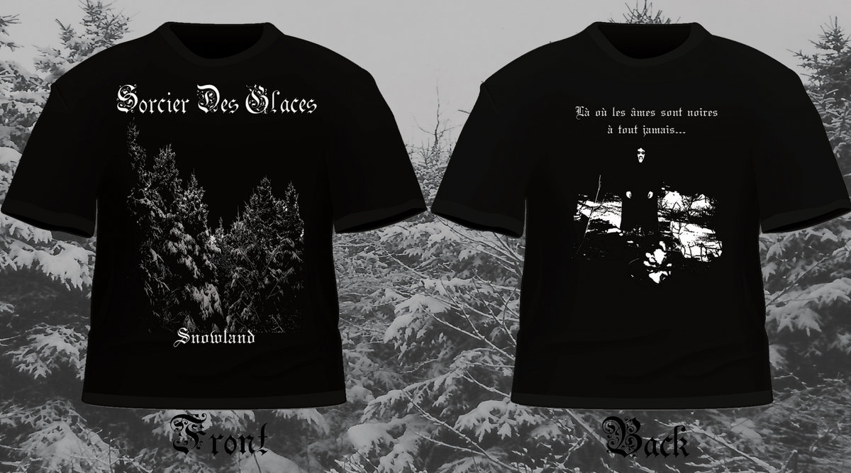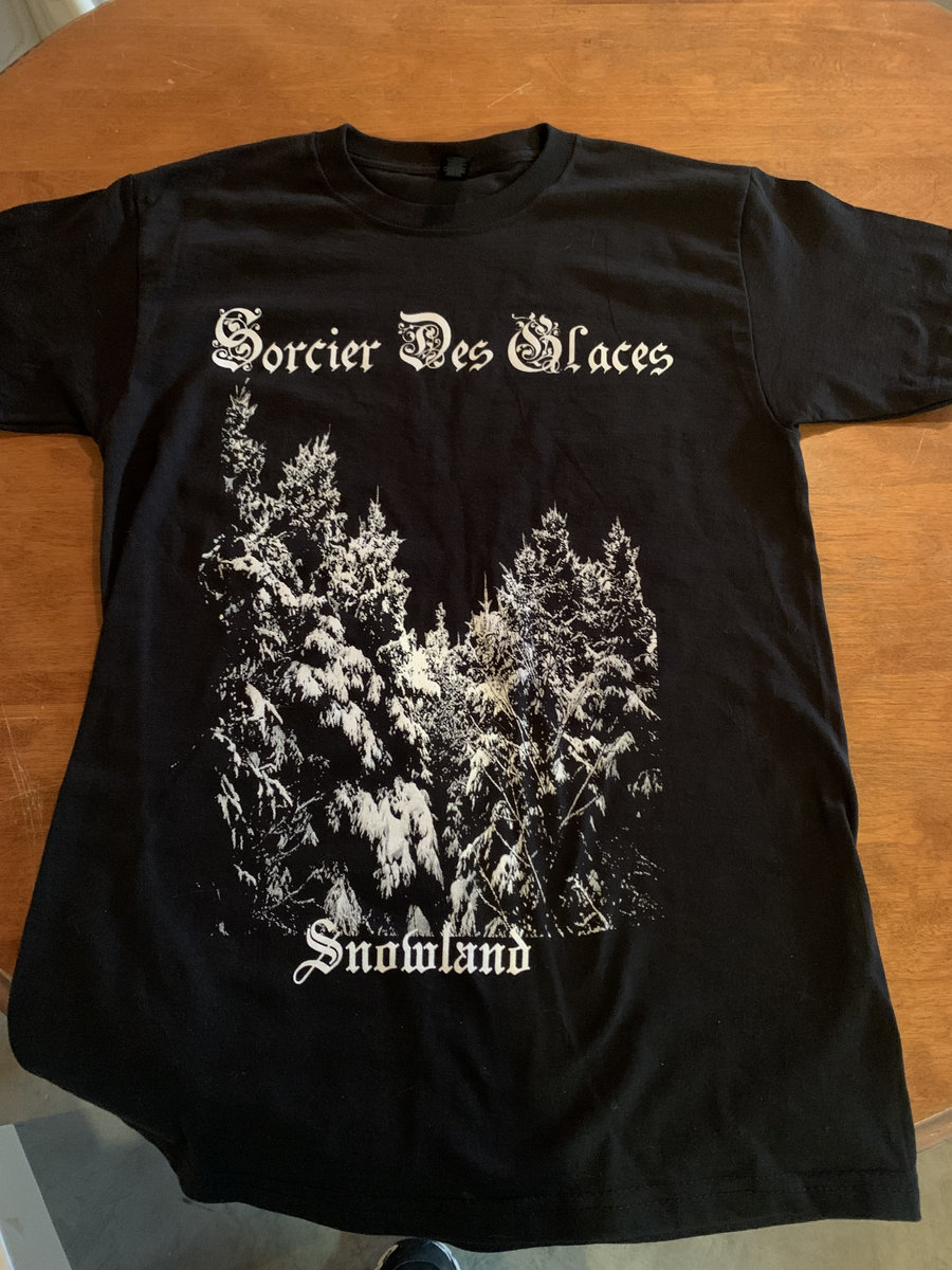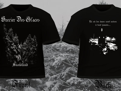 Black t-shirt with the Snowland design